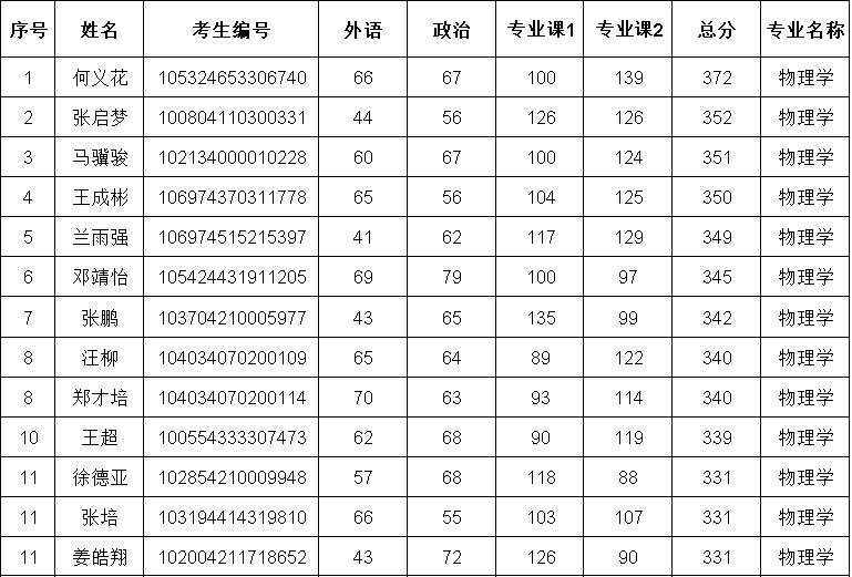 根据《2024年硕士研究生招生复试录取工作实施细则》中物理学调剂的基本要求,及复试比例1:1.5的差额,按照初试总分由高到低的原则,复试面试名单如下: