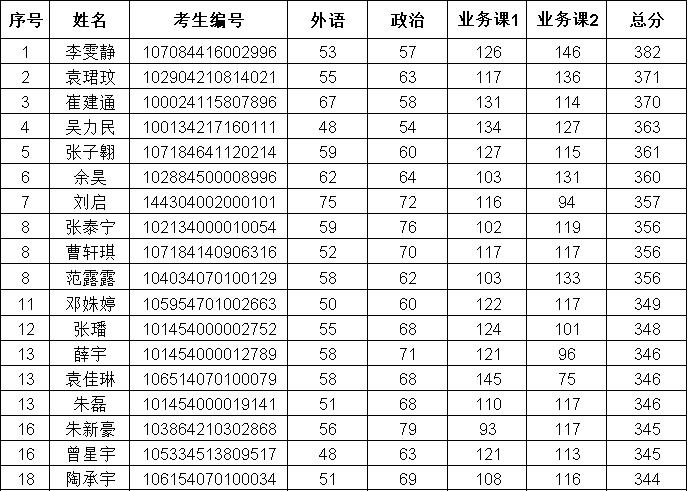 根据《2024年硕士研究生招生复试录取工作实施细则》中数学调剂的基本要求,及复试比例1:1.5的差额,按照初试总分由高到低的原则,复试面试名单如下: