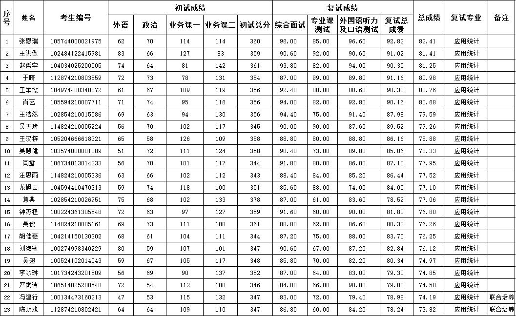 备注:复试成绩=综合面试×50%+专业课测试×30%+外语听力及口语面试×20%,复试成绩不合格(低于60分),不予录取。