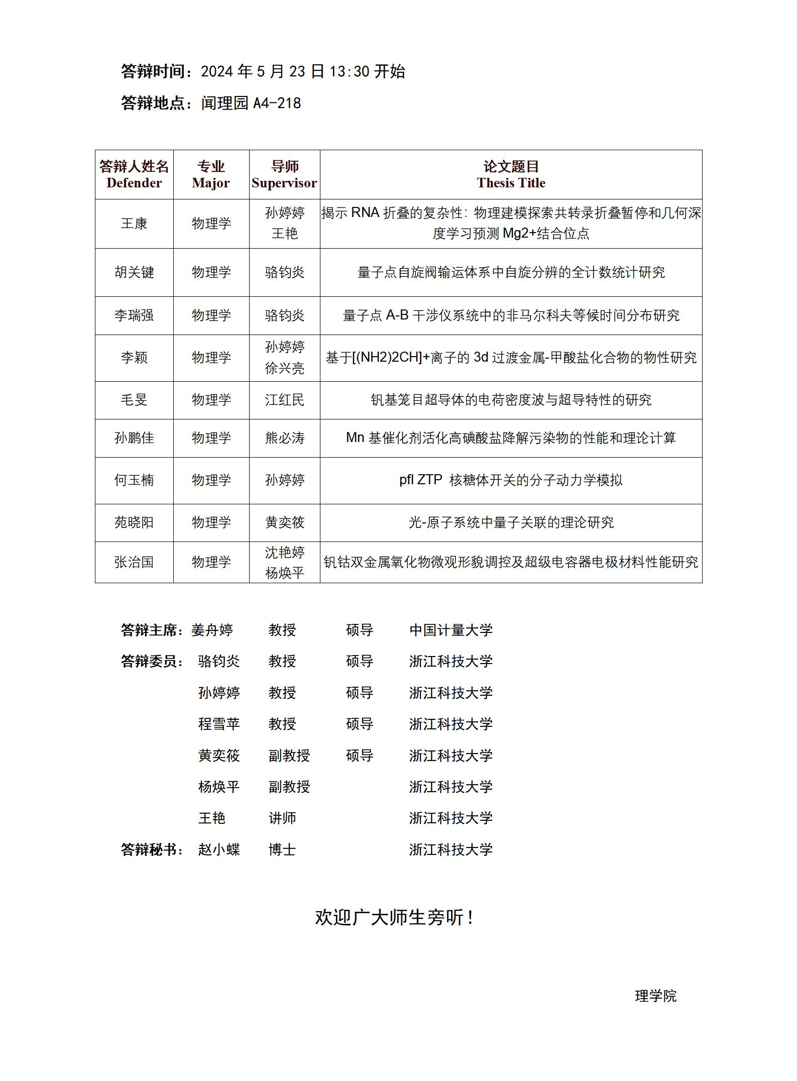 2024年yl23411永利官网登录硕士研究生学位论文答辩公告(物理学1组)