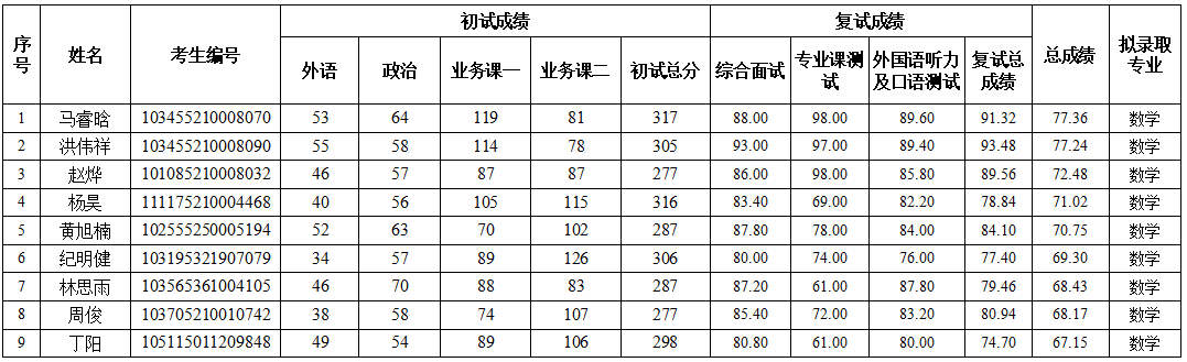经考生初试、复试等各个环节,公司招生工作领导小组确认,现对拟录取的考生进行公示(详见下表),公示时间为2025年4月10日至4月16日(7天),如有疑义,请以书面的形式反映,反映问题要实事求是,署本人真实姓名。