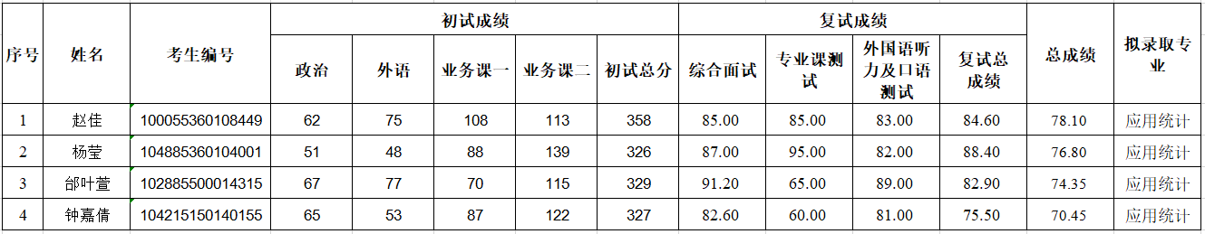 经考生初试、复试等各个环节,公司招生工作领导小组确认,现对拟录取的考生进行公示(详见下表),公示时间为2025年4月19日至4月25日(七天),如有疑义,请以书面的形式反映,反映问题要实事求是,署本人真实姓名。
