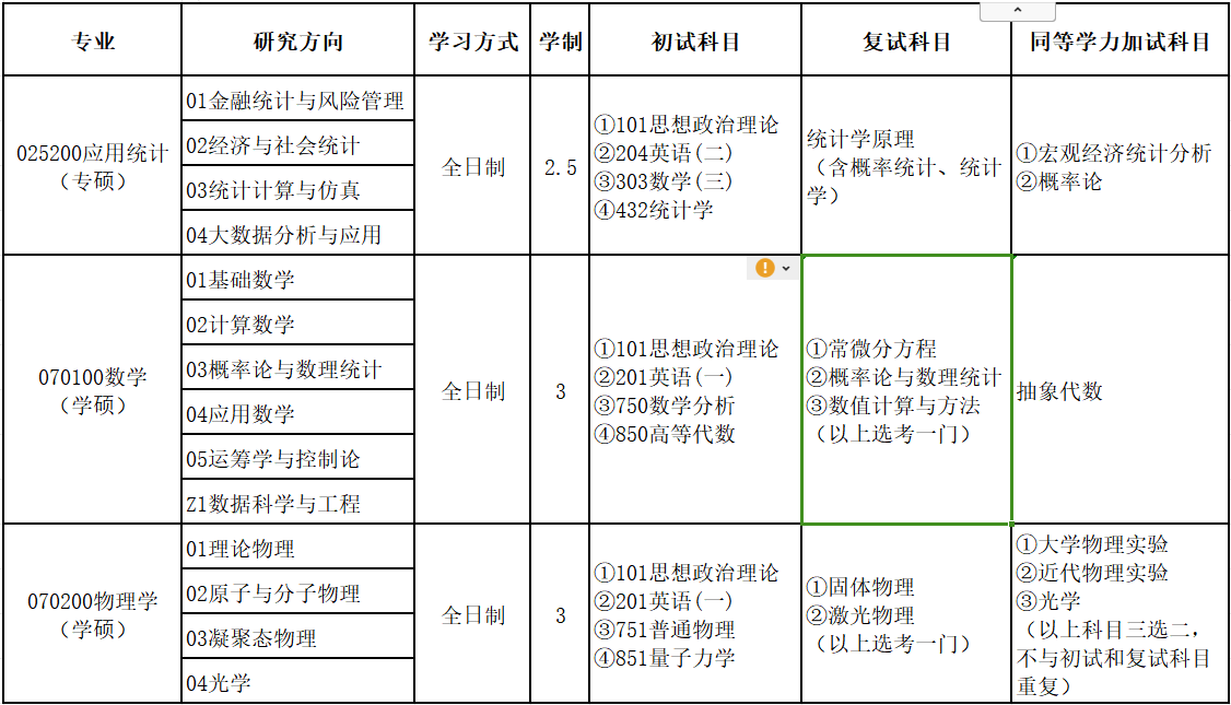 2023年硕士研究生招生目录和复试科目