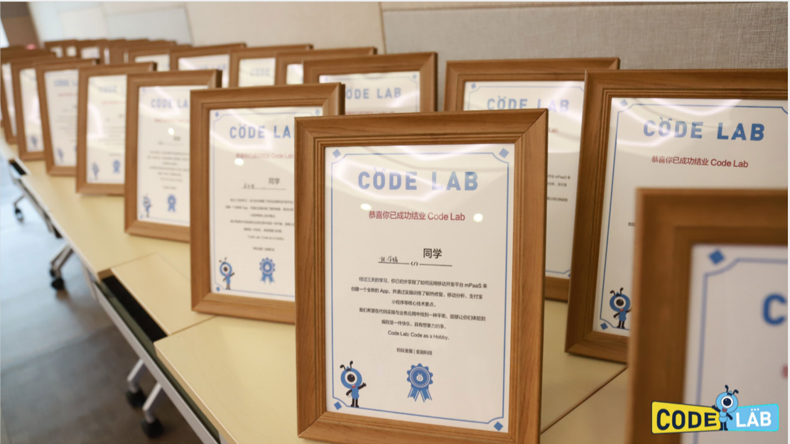 11月8日下午,公司21名员工参加为期3天的蚂蚁金服金融科技“CODE LAB”联合创新营。本期培训专门针对具备一定信息技术基础的在校生,以开拓创新思维为先导、打造实操能力为核心,形成深度学习社群,促进各界资源对接,落地科技产业创业创新项目。