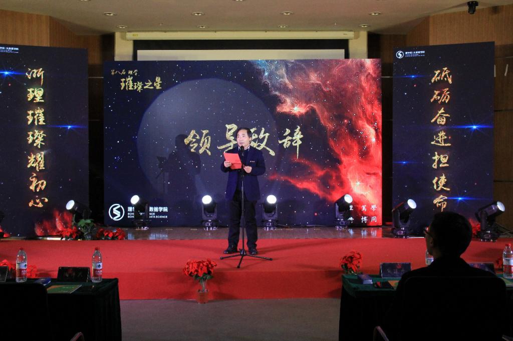 首先,陶经理代表公司向莅临本次典礼的各位来宾、老师、同学们表示了热烈欢迎,向即将接受表彰的先进个人和优秀集体表达了衷心的祝贺。陶经理在致辞中指出每年的“理学·璀璨之星”颁奖典礼既是一场表彰会,也是一场宣讲会,更是一场动员会。目的就在于,通过表彰唱响明理、笃学主旋律,弘扬慎修、博用正能量,以身边榜样的力量,引领广大理学学子为着理想不断追求,不忘初心奋力前进,勇做无愧时代、无悔青春的开拓者、奋进者和奉献者!借此机会,陶经理谈了以下几点想法与大家共勉:一、要永葆初心、多添鸿鹄志;二、要主动对标、多练真本领;三、要牢记使命、多怀报国志。