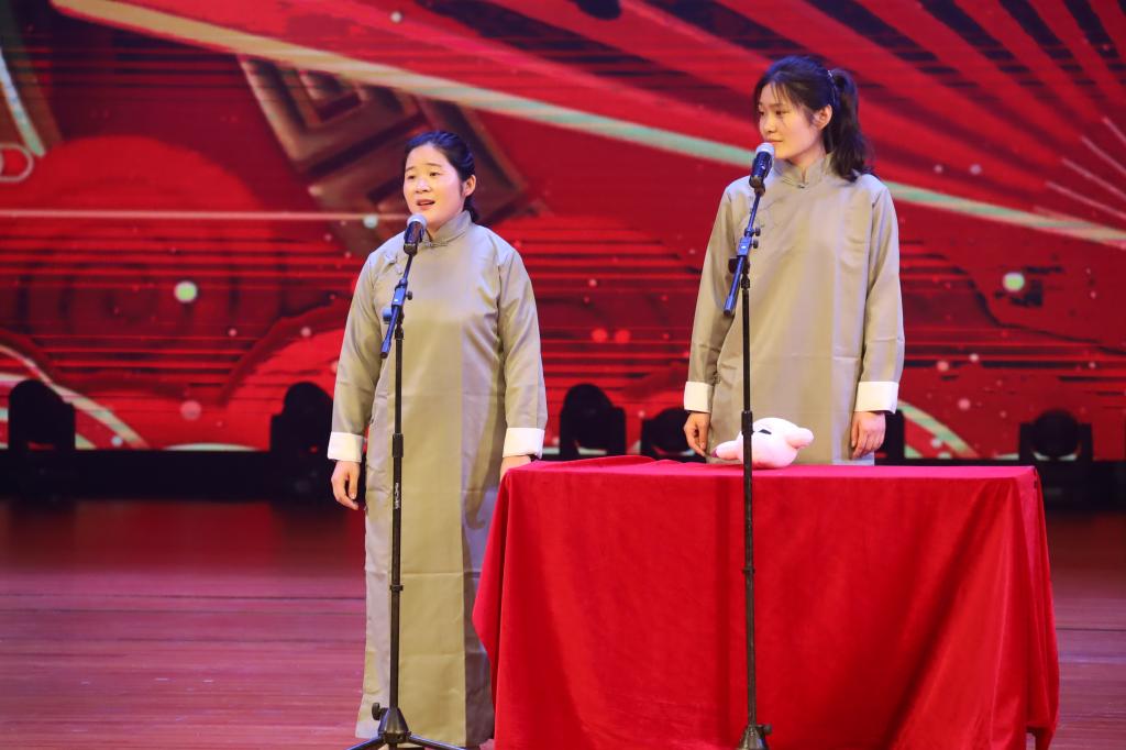 惊堂木一响,演出就开场,大马褂一穿,笑声就翻翻。公司学子不仅在学习科研上有所成就,课业有余也注重培养自身的爱好。陈岩、李慧慧为大家带来了相声《通话膨胀》。