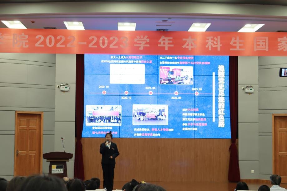 近日,浙江科技公司2022-2023学年本科生国家奖学金现场评选大会顺利举行。经评选,公司数据科学与大数据技术201班顾若萱、张楠成功获评2022-2023学年本科生国家奖学金。