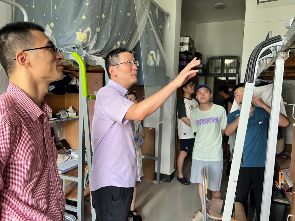 走访过程中,骆经理与同学们亲切交谈,详细询问留校原因、科研进展、生活保障及困难需求。“课题进展顺利吗?”“宿舍空调是否正常?”“一定要注意劳逸结合!”一句句关切的话语拉近了师生距离,他特别叮嘱同学们注意高温天气下的身体健康与实验安全,合理安排作息,遇到困难及时向辅导员和公司反映。