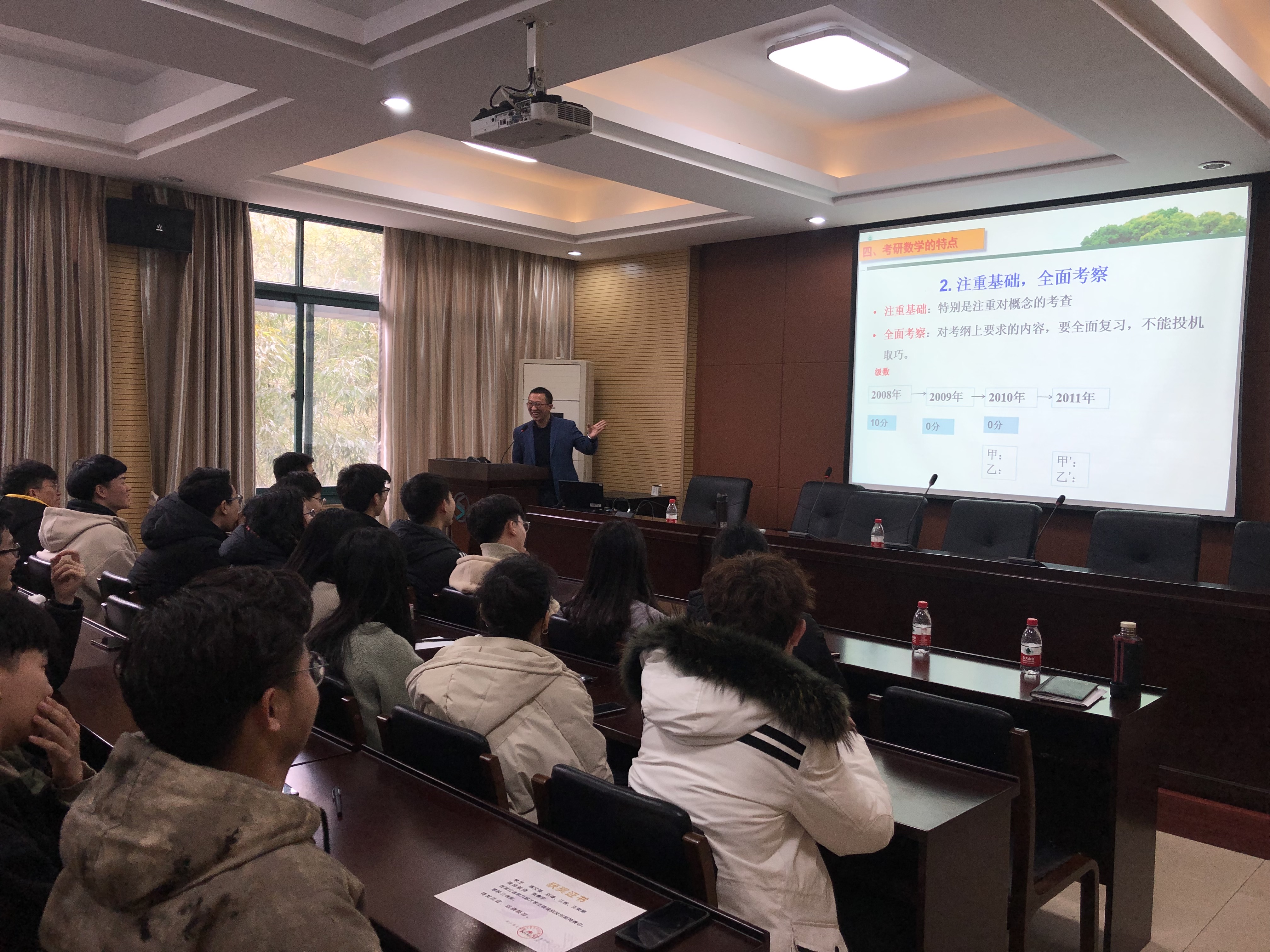 张老师提醒同学们:道路千万条,考研第一条;现在不努力,将来两行泪!在场同学纷纷表示受益匪浅。