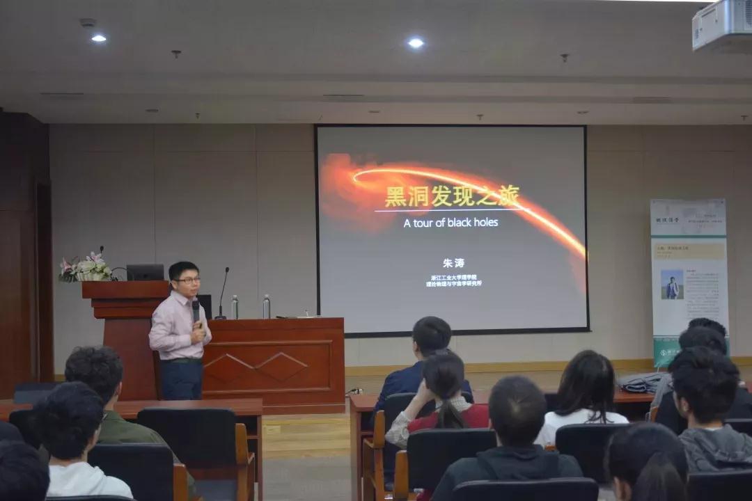 5月8日,明理讲堂第18讲暨劲竹书院精英俱乐部第47期在浙江科技公司安吉校区举行,浙江工业大学朱涛教授为大家带来了一场关于黑洞的发现之旅。100余名理学学子及安吉校区18级新生参与了聆听,讲座由yl23411永利官网登录/大数据公司党委副书记王宝明主持。
