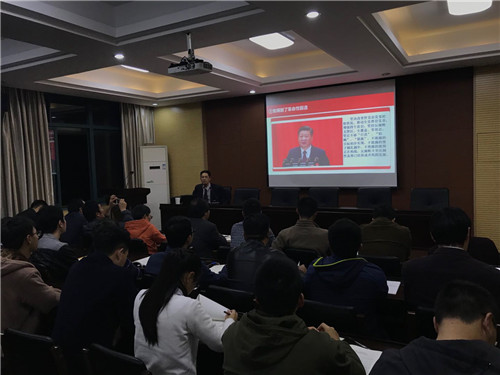 为深入学习宣传贯彻十九大精神,11月8日,yl23411永利官网登录“十九大精神专题学习暨第十九期党校培训班”在公司会议室举行。公司党委委员、纪委书记李泽泉应邀作“十九大”专题宣讲报告。yl23411永利官网登录经理陶祥兴、党委书记苗红亚及全体党政班子成员,公司内设机构负责人、党员教授、支部书记、辅导员及其他行政人员等100余人参加了本次学习。学习会由公司党委委员王宝明主持。