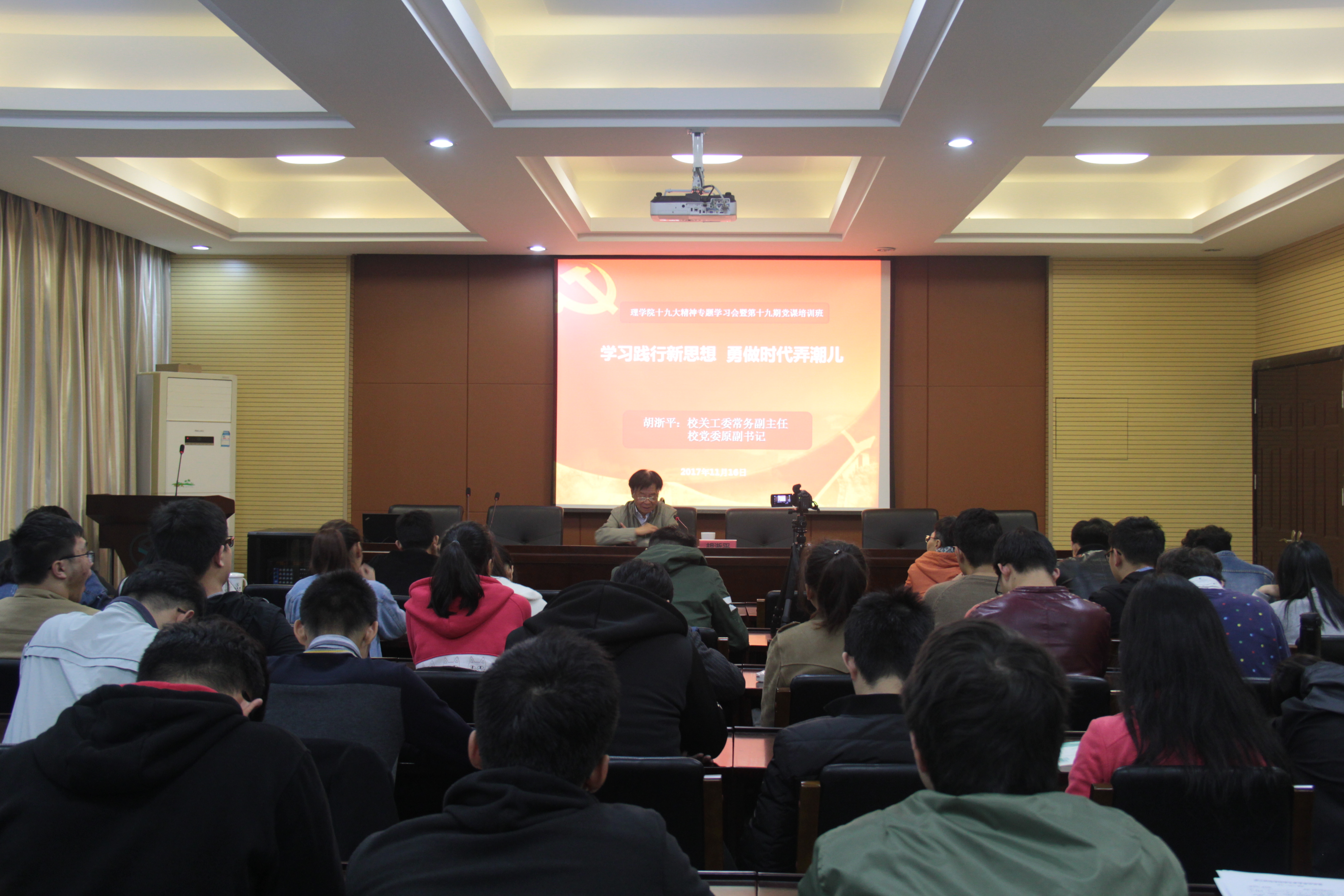11月16日,yl23411永利官网登录第十九期党校第二次党课举行,校关工委常务副主任、公司党委原副书记胡浙平为同学们授课。公司党委书记苗红亚、辅导员石大力以及员工党员、入党积极分子参加了本次学习。报告会由公司党委委员王宝明主持。
