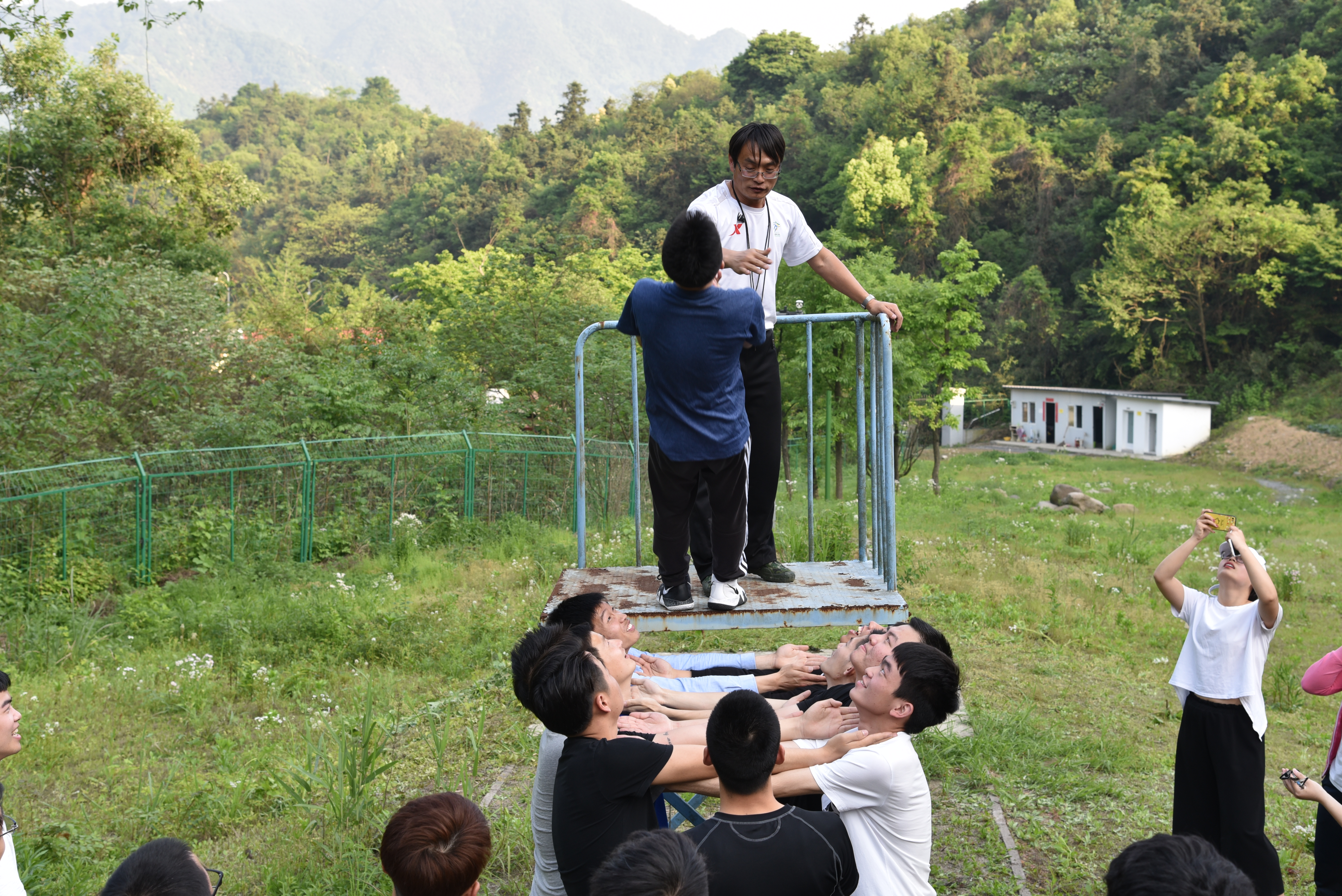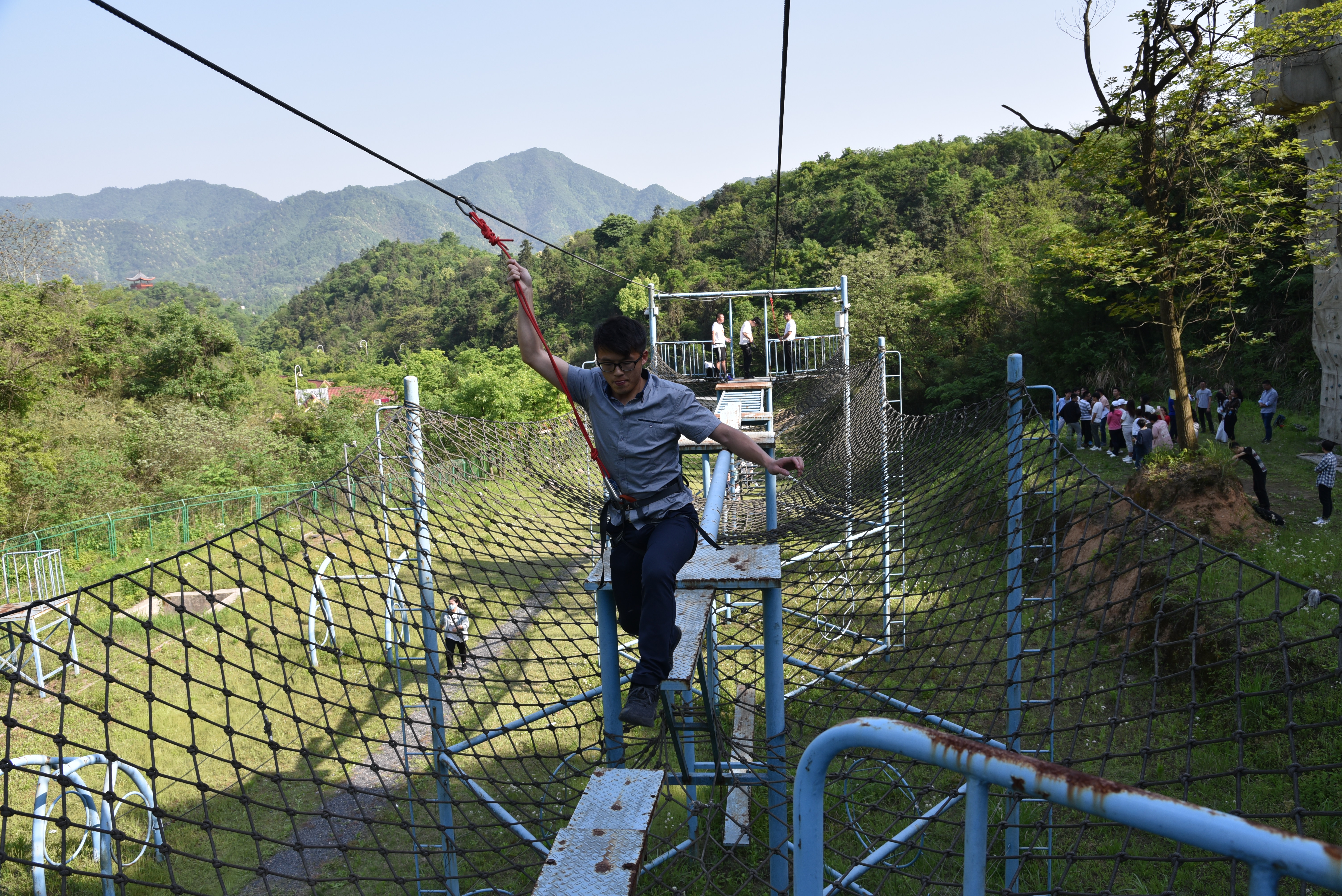 此次活动在体育部李俊波老师的指导下有序进行,在强调了有关安全知识后,师生党员分为三组体验了信任背摔、攀岩、空中行走等项目。在这些活动中,师生党员积极参与、勇于挑战,相互鼓励、加油打气,在充满乐趣和挑战的比赛中,激发出了大家的勇气和潜能,增进了相互间的交流和信任,加深了感情,培养了协作精神,增强了支部凝聚力。