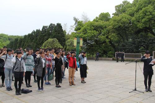 在革命烈士纪念碑前,员工党员代表向革命烈士敬献花篮。在主持人的带领下,全体员工党员在革命烈士纪念碑前面向党旗庄严宣誓。党总支副书记王杨向新老员工党员提出了组织的希望和要求。第一,要坚定理想信念,矢志不渝;第二,要知荣辱,树立社会主义核心价值观;第三,要发挥模范作用,营造良好班风、学风、校风。并强调了员工党员的责任意识,在工作、学习和社会活动中应起模范带头作用,应按时向组织汇报思想和工作情况,努力做一名合格的共产党员。新党员代表戴唯在仪式上发言,再次表达了对党的忠诚,并从学习、思想、生活等各方面提出了批评与自我批评的重要性。宣誓仪式结束后,大家在讲解员的带领下参观了革命烈士纪念馆。