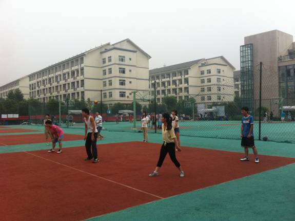 2013年5月29日傍晚,在夏日凉爽的微风吹拂下,员工第一党支部的本学期第四次活动——排球比赛拉开了序幕。赛前准备工作就绪后,党支部的成员们也陆续地来到了场地开始了热身运动。爱好运动的男生们很快地就拿着球跑到场地上开始练习,女生们也不甘示弱地摆好接球的手势,俨然一副临阵对敌的气势。