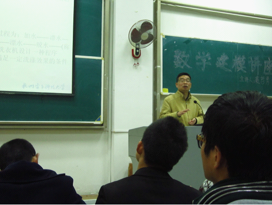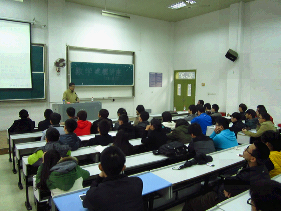 裘哲勇教授首先向同学们介绍了数模的基础知识,使大家对数模有了一个初步的认识,并以浙江省往年数模竞赛题为例,详细讲述了数模竞赛题的特点、解法以及论文写作要求,让大家对数模竞赛题型和竞赛形式有了系统的认识。裘教授还与同学们分享了自己对数学建模的亲身体会,他说:“数学建模是一门艺术,而不是一门技术。”会上,同学们还积极提问,裘教授耐心详细地一一做了解答。