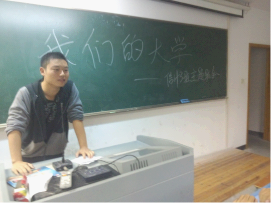 2012年11月4日星期日晚18:30,信计123班在图书馆西楼210教室举行了以“我们的大学”为主题的班会,班主任李蔚参加了班会。