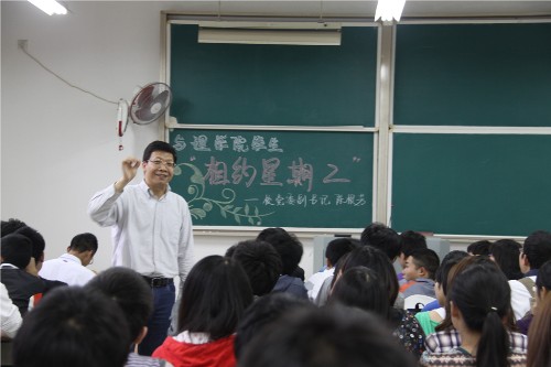 陈书记用自己传奇般的求学经历,向同学们展示了大学的学习应该如何。他告诉大家在大学有学习的无限可能性,只要找好要达到的目标,就想尽一切办法向最好的榜样靠近,能够付出汗水、泪水甚至是血水的人一定能成功!同学们提出了“老员工活究竟应该怎样过?”、“大学里专业设置是否合理?”、“如何才能找到以后适合自己的工作,生活的意义在何方”等问题,陈书记一一作答,丰富的表情和肢体动作让同学们倍感亲切。