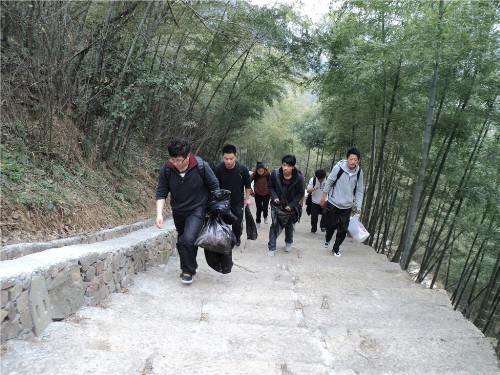 虽然没有小旗子在前面带队,但我们一样充满精神,分工明确;虽然我们没有专业的登山装备,但我们一样努力给大山除去污点;虽然我们没有大队的人马,没有响亮的口号,但我们踏踏实实的做事。路上的行人用赞扬的目光看着我们,亲切的问我们是什么公司的员工,真诚的说我们做得好。