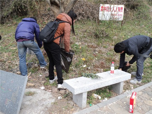 3月5日,正好是周末,我们体育部开展了“学雷锋”——“上山清垃圾,保护大自然”的活动。此行的目的是尽我们微薄之力,清理山上的垃圾,还给大自然一个清洁的环境。上午,寒气还没有散去,我们九人小分队带着环保袋就准时从校门口出发了,向老焦山进发。