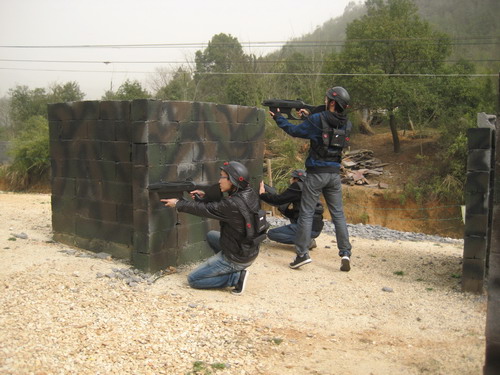 当我们穿上服装、戴上头盔、抗起枪后,就像是真正的军人一样,看上去威风凛凛,大家都是第一次这样的打扮,感觉既新鲜又兴奋。在听完教练员的解说后,游戏也正式拉开帷幕。我们与建工公司的同学开始对战,双方互打攻防战,两队轮流做攻方或者守方,打得不亦乐乎。跌、爬、滚、打......杀过了,玩过了,笑过了,喊过了,发泄过了之后,同学们之间的距离又亲密了许多。在彼此心里也悄悄滋生了一份特殊的“革命友谊”。毕竟是“枪林弹雨”中一起出生入死过的战友啊。