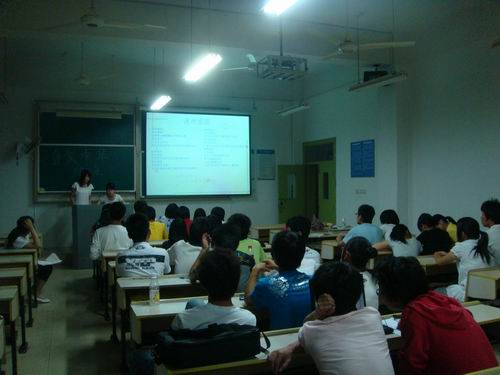 主持人周思思介绍了活动的规则,会长叶鑫杰随后致辞并宣布比赛正式开始。每组同学各展其能,有声有色地展示着自己的PPT作品,运用独特的语言技巧征服了场下的裁判和观众。每组结束,评委团都认真的进行了点评,提出选手们的不足之处,给予建议。上半场比赛结束,我们在比赛间隙奉上了经典视频——海军六十周年大阅兵。这次阅兵时的军舰都由我国自主研发,我们选择了评委以及在场观众谈谈自己的看法,使得全场人员深刻了解了中国对于军事的重视,和中国自主研发高科技产品的决心。下半场比赛继续进行后,我们选拔出了前三名,并颁发证书,送上奖品且合影留念。