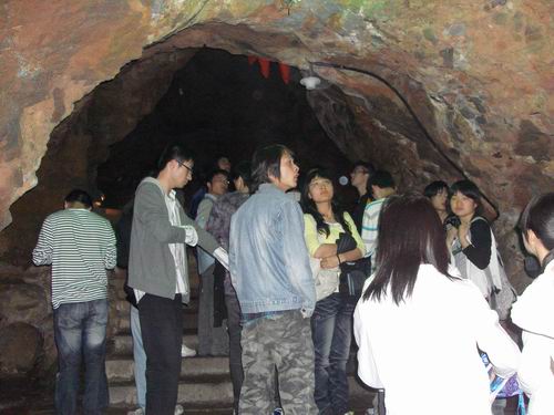 因为是09第一次春游,也因为刚从考试中解放出来,大家格外的放松。在云淡风轻,光影互相嬉戏的水库坝上,大家就那样迎着风,三三两两的席地而坐,聊着,笑着,打闹着。在灵山洞里登高,一片漆黑,大家手牵手,一声声“当心”随处能听得到。野外烧烤,更是全体出动,忙着洗菜,切菜,生火。这里一小窝,那里一大窝的为晚饭紧张的忙碌着。是该露一手了,考验大家烧烤技术的时刻到啦!这里有烤的油光发亮的鸡翅,于是这里有争抢的壮观画面;那里有焦了却依然半生不熟的花菜,于是有独自愁眉狠吃的画面。偶尔有些许偷懒者,四处乱串,寻找烤好的战利品。夜幕降临的时候,透过火光,显现的是一张张熏红的脸。大家闹累了,安静下来了,借着微弱的篝火,尽情畅吐着心里话。此刻,我们抛开往日的匆忙,不管这匆忙是因为学习,还是因为电脑游戏,尽情享受着这温馨的一幕,不让生活的匆忙掩盖掉我们内心的律动。