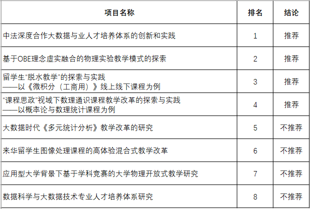 根据《浙江省教育厅办公室关于组织开展高等教育“十三五”第一批教学改革研究项目申报立项工作的通知》(浙教办高教〔2018〕50号)文件精神和《浙江省教育厅办公室关于开展高等教育“十三五”人才培养项目立项建设工作的通知》(浙教办函〔2019〕316号),公司认真组织了申报工作。截止12月1日,共收到申请书8份,经公司评审小组评审排序,排名前4的推荐提报教务处,名单公示如下:
