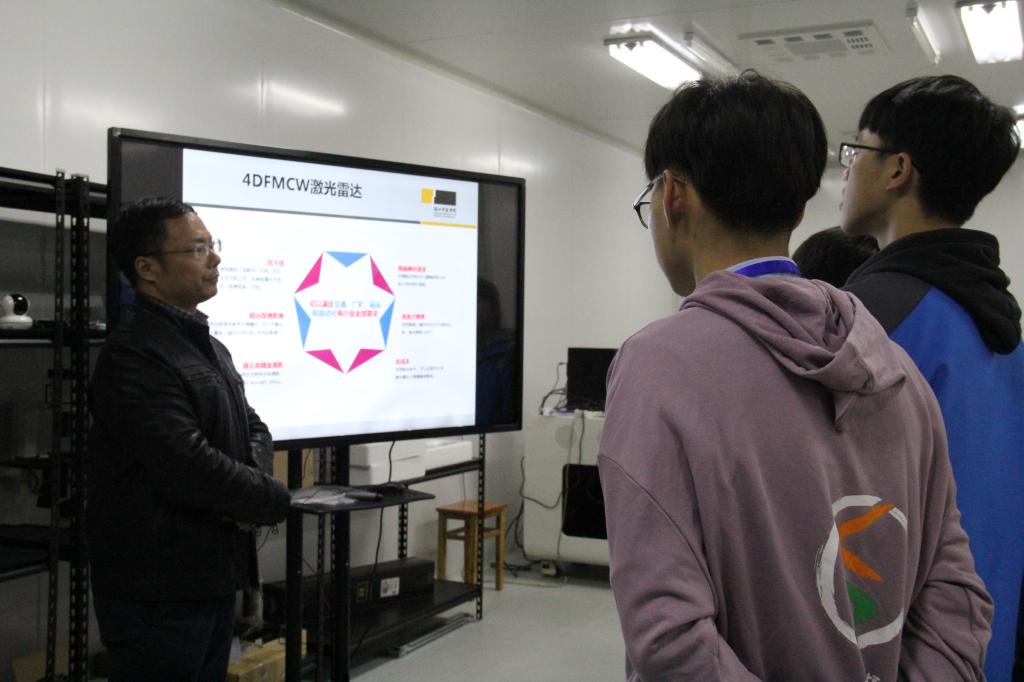 随后,来访师生分两批交替参观了公司大数据科学与技术实验室和应用物理实验室。史文彬、黄喆、职亚楠三位专业老师详细讲解了大数据分析、激光雷达的有关专业技术并做了现场演示。同学们兴致盎然、频频提问,对公司各专业表现出了极大兴趣。