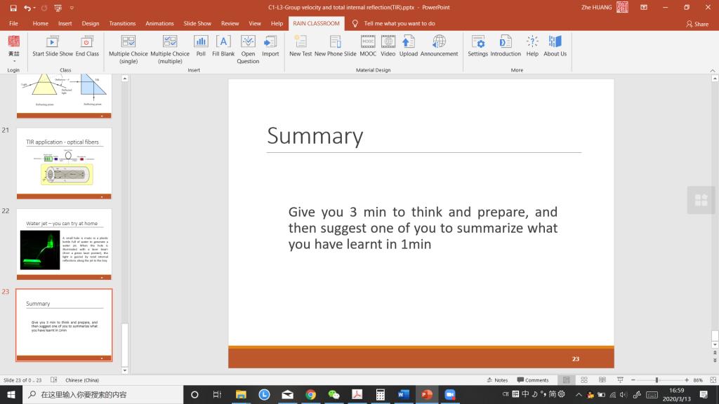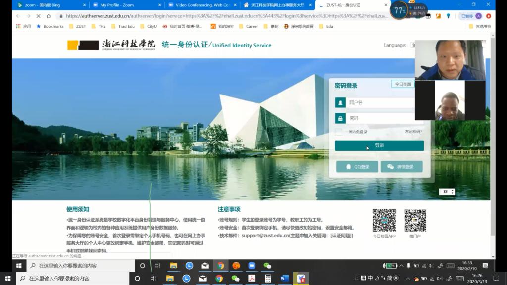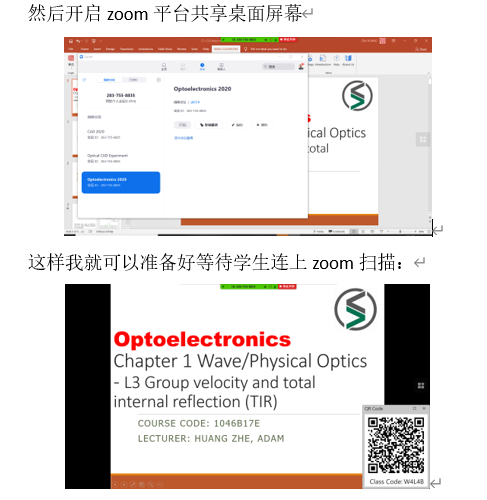 课程开始前做平台的调研(首选比较稳定的最好全英文),比较理想的是钉钉、zoom和雨课堂平台。当时2月份全国网课开始后总结开始的网课卡顿经验,考虑到大陆这边大学普遍采用QQ群视频方式而中小学多数采用钉钉,所以本人就采用相对大陆用的少的zoom平台以避免课上卡顿的几率发生。当然后来钉钉经过阿里云的几轮扩容后几乎没有卡顿情形成为了备选,QQ群视频/直播也在腾讯的扩容下运行平稳就是对于职工新申请QQ号过程相当困难所以最后放弃了。