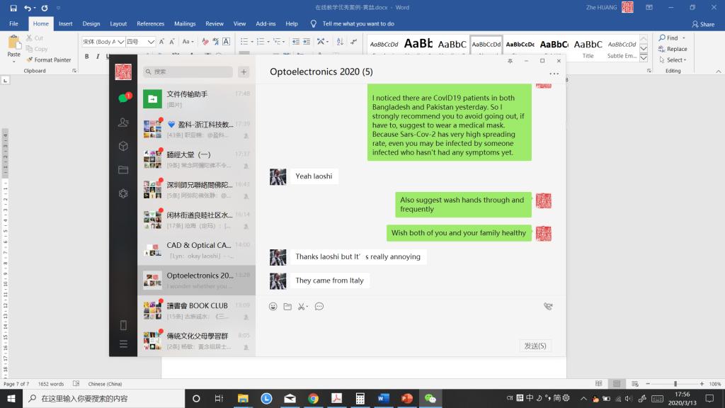 职工对于目前的新冠肺炎世界流行是比较担心的,尤其是在海外的同学,他们比较心烦。所以我先安慰和提醒他们做好个人和家庭的防护工作。
