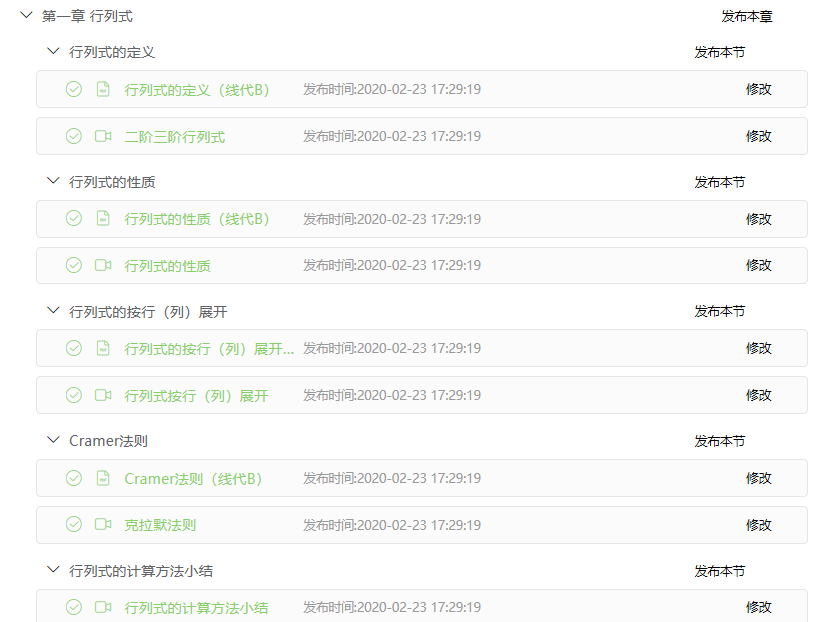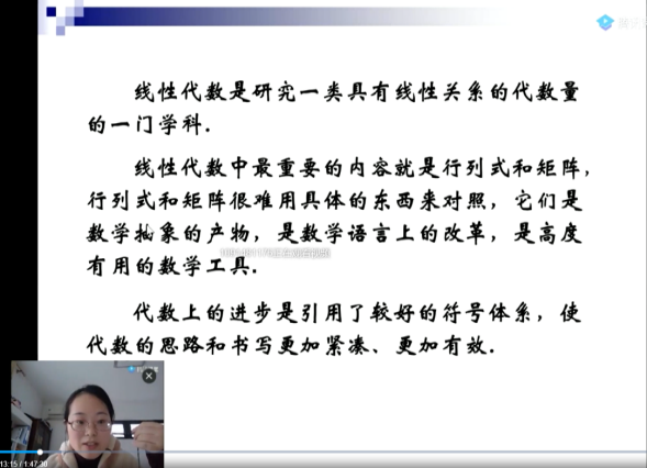 针对员工,以章节的形式提前在浙江省高等公司在线开放课程共享平台上发布即将学习的微课视频,本课程共有35个教学微视频约100道习题,视频包括线性代数四个章节的内容,每个微课视频时长10分钟左右,由浙江科技公司yl23411永利官网登录多位教师精心制作而成。