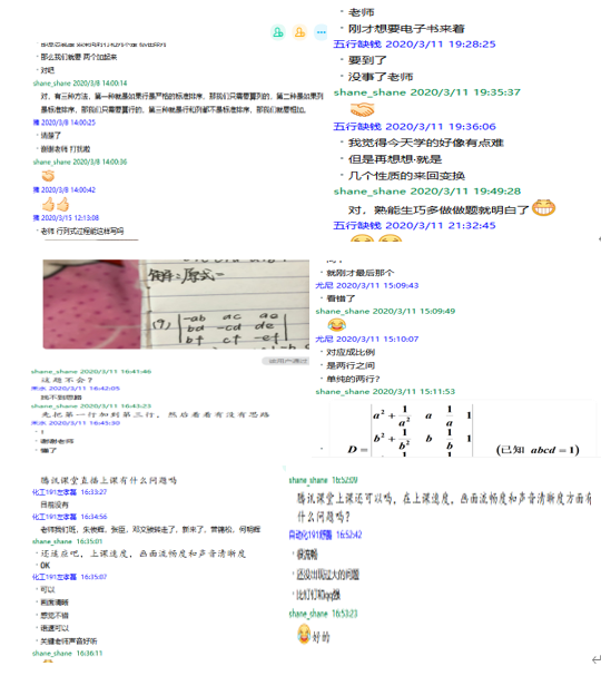通过近一个半月的线上学习发现采用这种形式上课,课堂上员工积极与老师互动尤其是在做计算题时,有疑惑也会在评论区或者QQ群及时发问,便于老师实时解决问题,从而在保证课堂教学顺利而有序的进行的情况下提高线上课堂的教学效率。