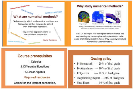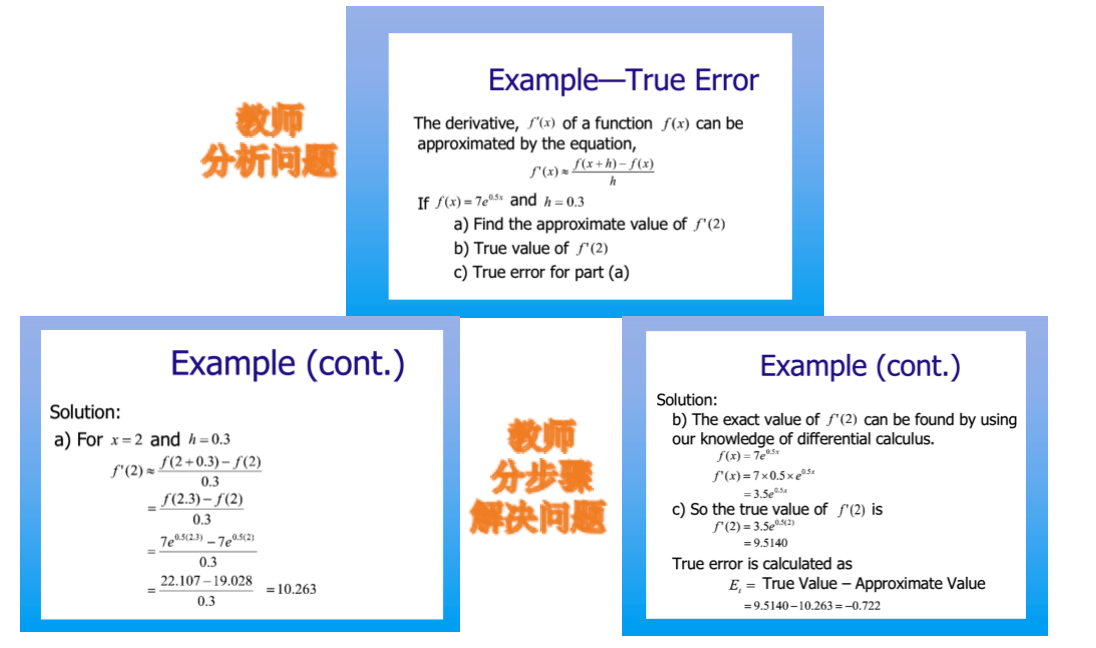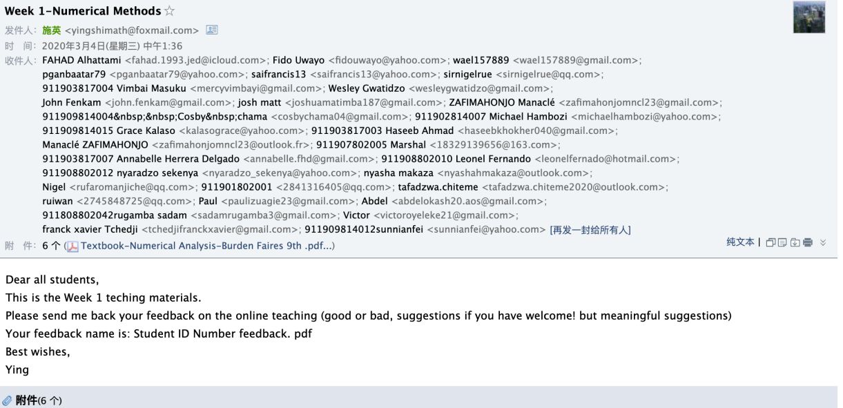 记得曾经我们yl23411永利官网登录数学系组织的年终教学沙龙活动中,朱婉珍教授给我们青年教师作了题为“卓越教学始于教学设计”的教学讲座,使我受益匪浅。切实理会了上好一门课有“三要”:一要树立一种正确的教学观,立志做一名好教师;二要精心设计每一次课,全身心投入到教学实施;三要建立一种良好的师生关系,有效落实教学目标。线上教学亦是如此。以下是《数值计算方法(英)》第一周课程的在线教学的教学设计。