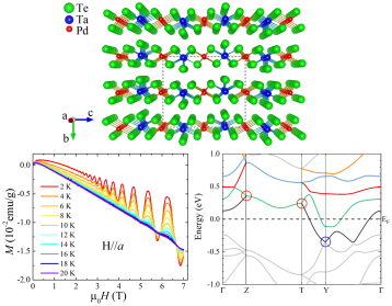 近年来发现的大部分拓扑材料都具有二维或三维的结构特征,具有准一维结构的拓扑材料很少见。作者通过自助溶剂法成功合成了具有准一维链状结构的TaPdTe5单晶,TaPdTe5不仅是首次被发现的新材料,而且实验上作者通过Shubnikov de Haas(SdH)和De Haas-van Alphen(DhvA)震荡证实了它是一种拓扑Dirac半金属,考虑到结构低维性带来的独特性质,其中的拓扑本质引人关注。上述研究得到了国家自然科学基金面上项目、浙江省自然科学基金一般项目,以及国家重点研发计划的资助。焦文鹤副教授是该论文的第一作者和通讯作者,公司yl23411永利官网登录应用物理系研究生谢晓萌为论文第二作者,浙江科技公司yl23411永利官网登录应用物理系为论文第一单位。