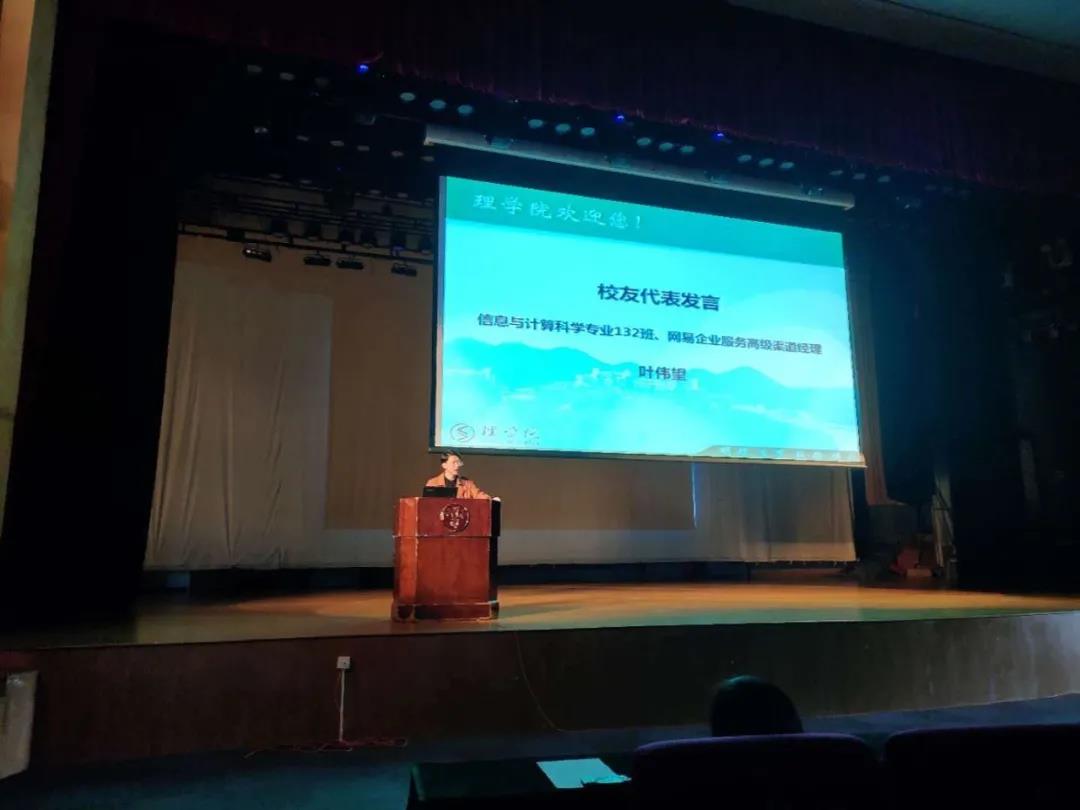 在一片掌声中,理学院/大数据公司17届毕业生,信计132班叶伟望,现任网易企业服务高级渠道经理作为员工代表发言。“大学是我们绽放青春最好的舞台”,因此他向新生讲述了老员工活应该如何度过,如何在这个舞台上展现自我。叶伟望鼓励大家提高自我认知能力、多参加社交活动、在学好专业知识的前提下培养有意义的爱好等。
