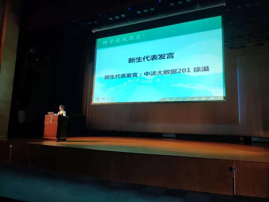 接着,来自中法大数据201班的徐镒同学代表2020级新生上台发言。她就求知、真诚、感恩三个方面描绘了大学新生进入大学后应该有的风貌。