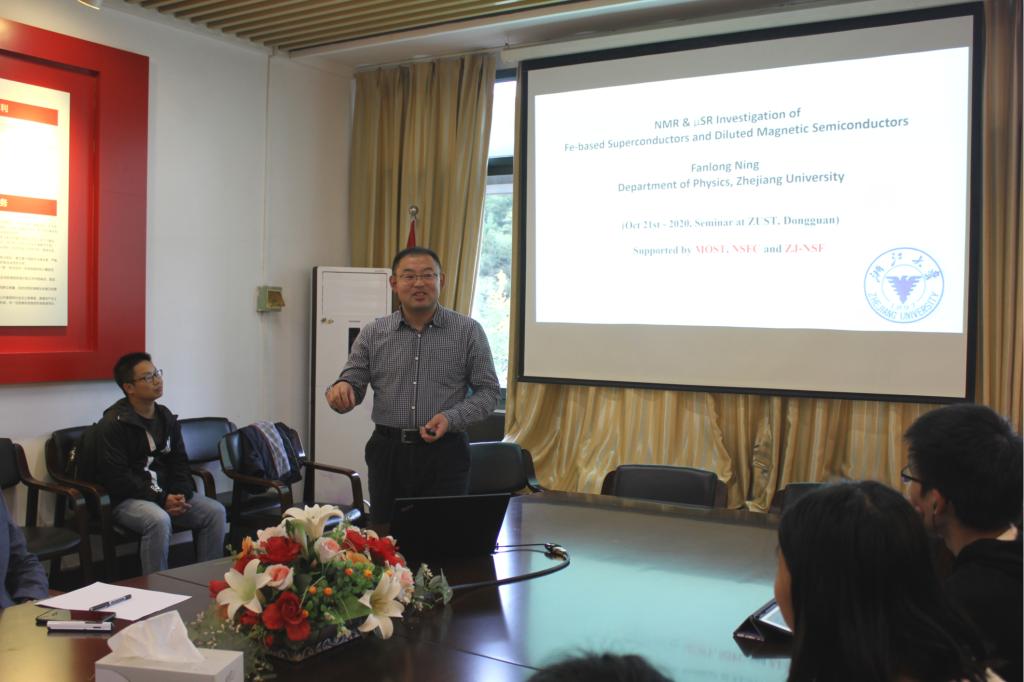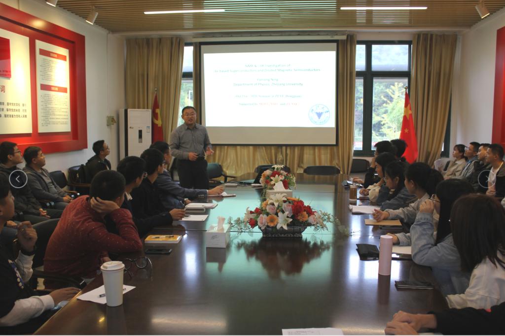 2020年10月21日下午,浙江大学物理学系教授、博士生导师宁凡龙教授应邀做客公司物理格致论坛,做了题为“铁基超导体和磁性半导体的NMR和µSR研究”的精彩学术报告。此次报告由应用物理系焦文鹤副教授主持,应用物理系部分老师、研究生和部分本科生同学共同聆听了报告。