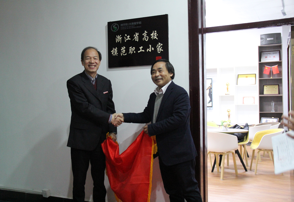 陶祥兴和张掬婴简单介绍了“浙江省高校模范职工小家”的建设情况和功能。随后,周加敏和陶祥兴为“浙江省高校模范职工小家”揭牌。