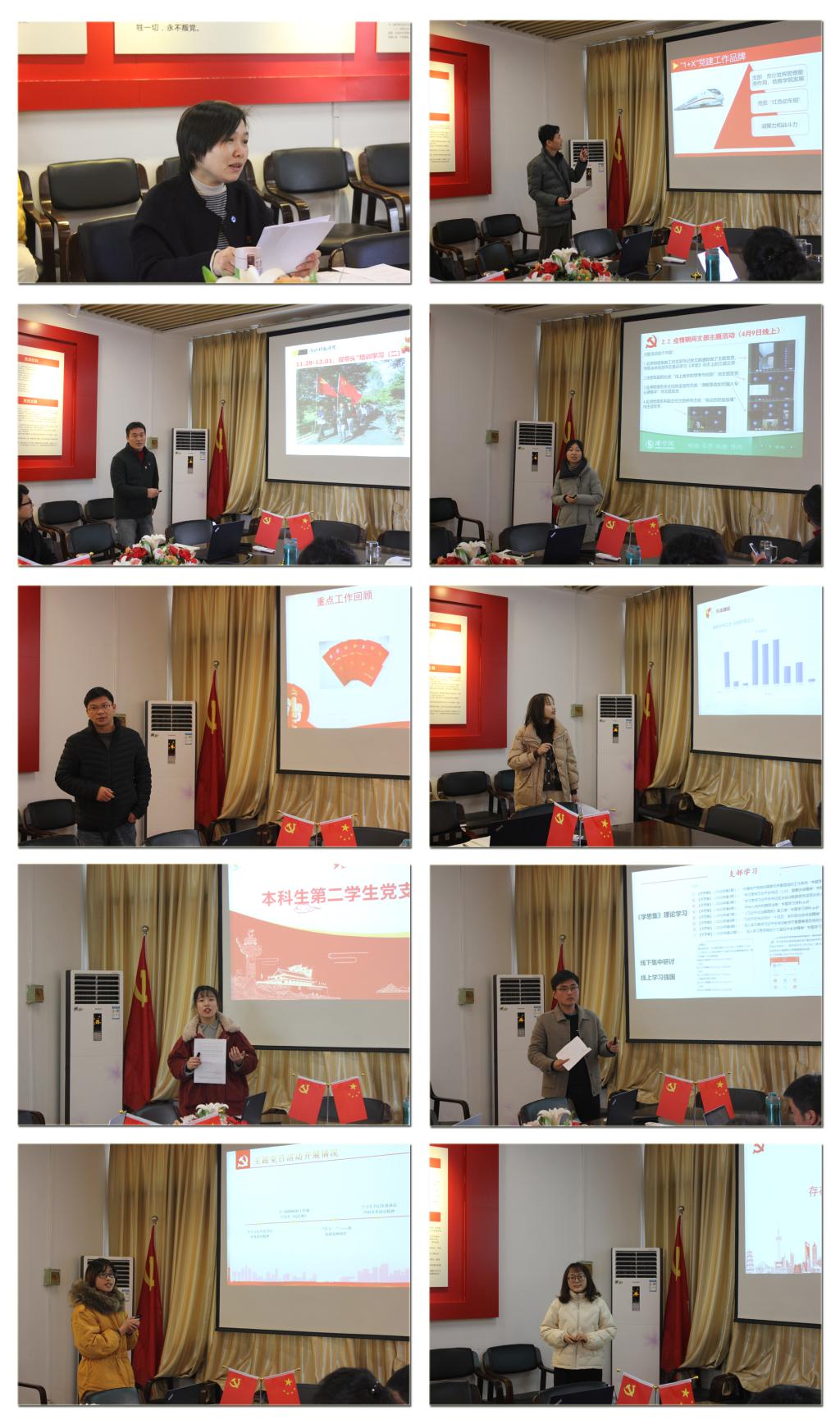 各党支部书记围绕党建工作主要做法与成效、存在问题与不足以及下一步工作打算汇报了支部2020年工作情况。在过去一年中,各党支部以习近平新时代中国特色社会主义思想为指导,坚决全面贯彻党的基本理论、基本路线、基本方略和上级决策部署,及时传达学习上级重要会议、文件精神,严格落实“三会一课”制度,围绕中心工作,结合自身支部特色,科学推进各项工作落实,全面提升党支部的组织力、凝聚力和战斗力。