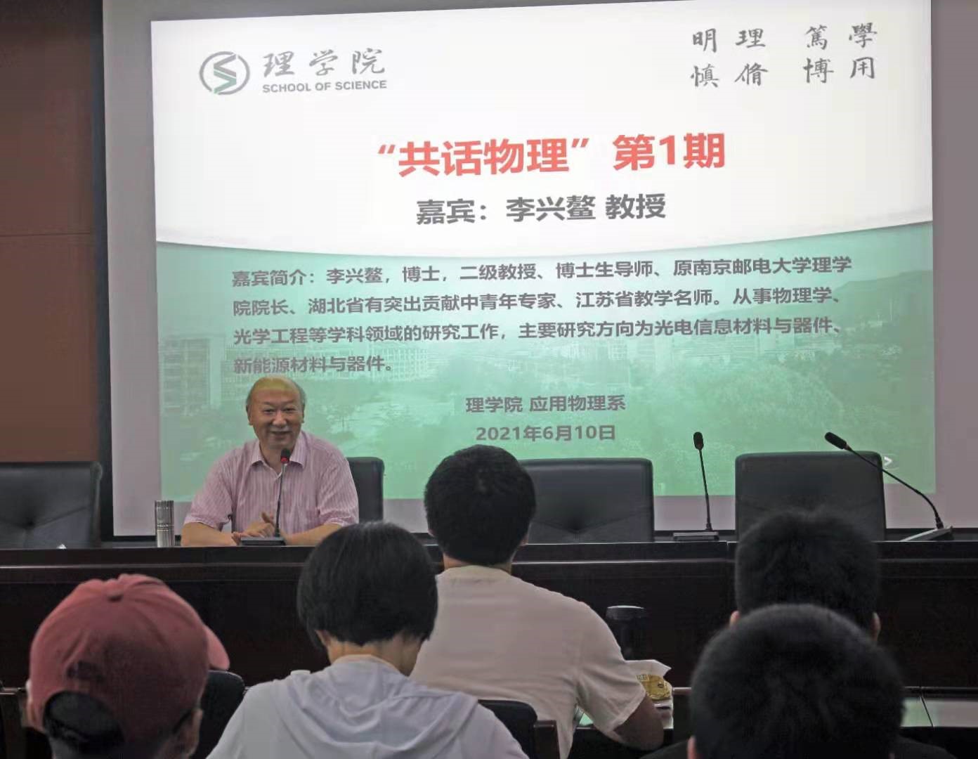 2021年6月10日,应用物理系邀请了南京邮电大学李兴鳌教授与物理学专业大二、大三的同学进行座谈交流。公司党委书记张掬婴老师、系主任孙婷婷老师以及班主任黄喆博士参加了此次活动。