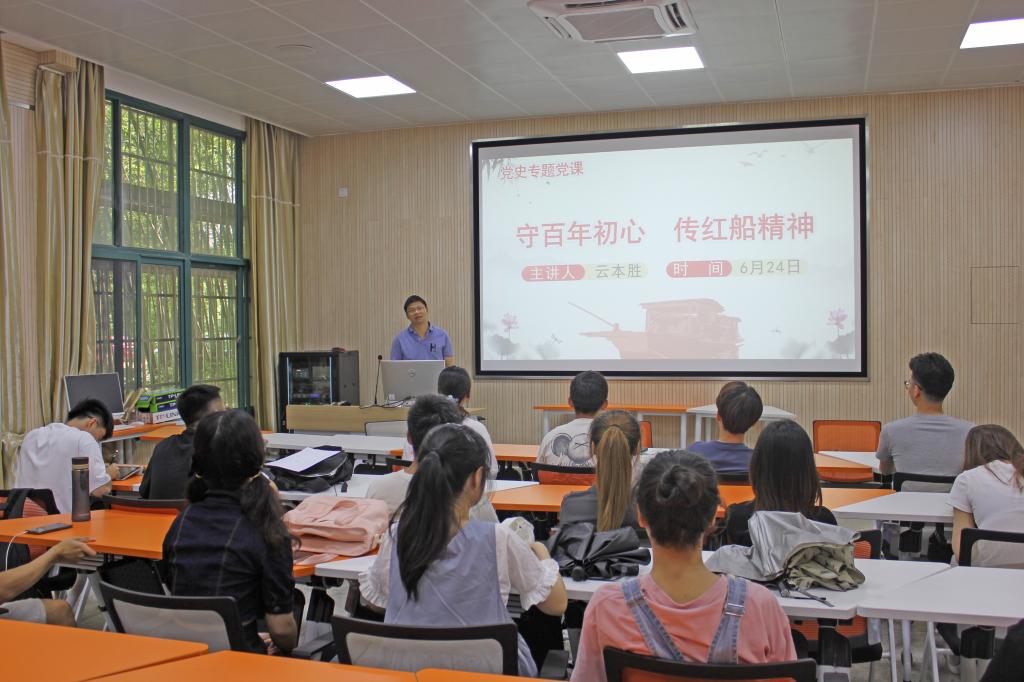 为深入学习贯彻习近平总书记在党史学习教育动员大会上的重要讲话精神,扎实推进党史学习教育, 6月24日上午10点,公司党委委员、副经理云本胜在A4-116为公司本科生第三党支部的党员上专题党课《守百年初心 传红船精神》。
