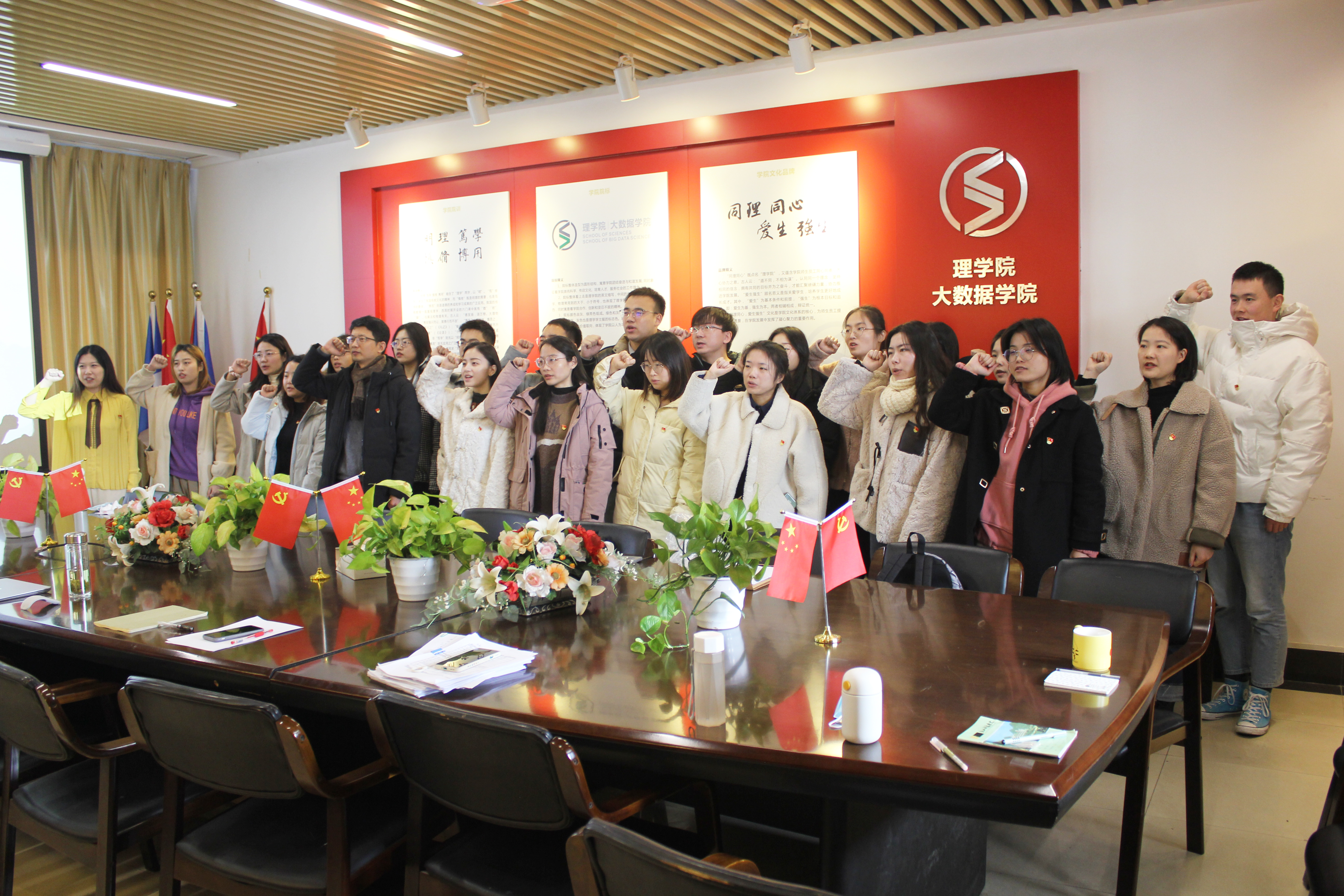 课后,在钱亚冠的带领下,大家面对鲜红的党旗,举起右手,一起重温入党誓词。通过铿锵恢宏的誓词,大家再次表达了“不忘初心、牢记使命”的信念和决心。