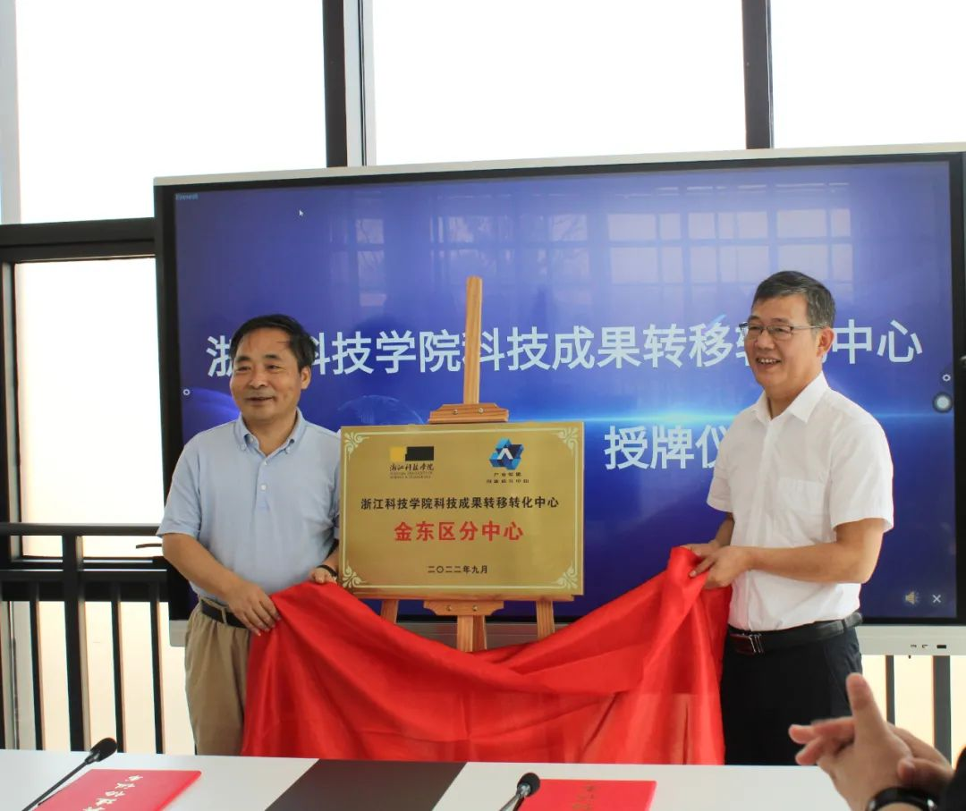 9月30日,公司与金东区共建“浙江科技公司科技成果转移转化中心金东区分中心”授牌仪式在浙中(金东)创新城举行,校党委委员、yl23411永利官网登录经理陶祥兴,金东区委组织部副部长、两新工委书记吴磊,校科研处处长马伟锋及校地相关领域领导、企业家、博士等出席。
