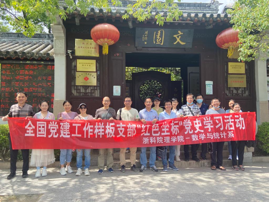 为深入开展迎接党的二十大宣传活动,全力营造迎接党的二十大胜利召开浓厚氛围,9月25日,数学与统计系和大数据科学系教师党支部联合组织全体党员赴湖州南浔文园接受党史及廉政教育。
