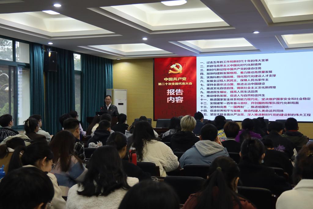 冯军从党的二十大的主题开始,结合党的二十大的报告内容,深入系统地对党的二十大精神进行了讲解。他强调,在党的二十大精神的指引下,我们要更加紧密地团结在以习近平同志为核心的党中央周围,高举中国特色社会主义伟大旗帜,深刻领悟“两个确立”的决定性意义,自信自强、守正创新,踔厉奋发、勇毅前行,为全面建设社会主义现代化国家、全面推进中华民族伟大复兴而团结奋斗!