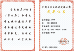 获“华数杯”全国老员工数学建模竞赛国家一等奖4项【21大数据-黄予攀、方言、21中法大数据-徐章升;21信计-钟子琦、王涛、邓海瑶;22信计-杨佳乐、21计算机-李露露、22信计-刘怡婷;21工业工程(中德)-王森鸿、21中法大数据-舒展、21大数据-来程凯】,国家二等奖7项,国家三等奖5项。