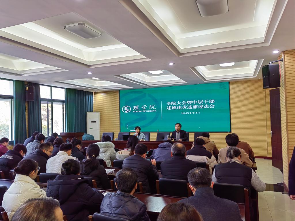 1月11日下午,公司在A4-216会议室召开全院大会暨2023年度领导干部述德述责述廉述法大会。公司全体教职工参加此次会议,大会由党委书记张掬婴主持。