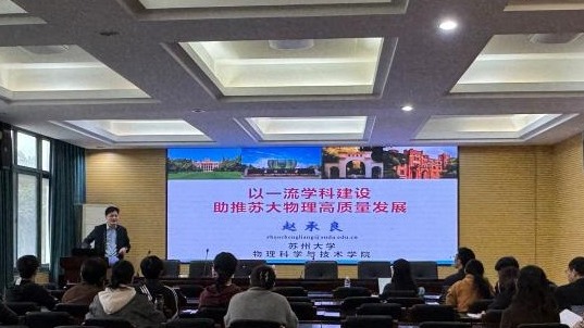在本次报告中,赵承良教授首先向我们展示了苏州大学物理学科的发展轨迹及其建设成就。他深入分享了在党建引领、团队队伍建设、人才引进、人才培养、学科平台建设、立德树人以及社会服务等多个方面的实践方法和宝贵经验。苏州大学物理学科作为江苏省高校优势团队建设工程项目的一部分,其物理学在ESI全球排名中位列前1%,并在2023年取得了全球第313名(国内第18名)的佳绩,这无疑为公司物理学科学习树立了一个值得借鉴的典范。