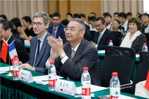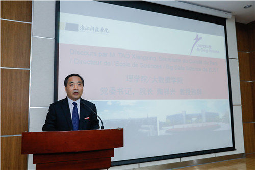 10月26日,公司与法国塞尔齐•蓬多瓦兹大学首届数据科学与大数据技术中法班2019级开班仪式在安吉校区中德工程师楼B4报告厅隆重举行。公司党委书记龚建立、法国赛尔齐•蓬多瓦兹大学董事长François Geminet、法国驻上海总领馆教育领事Fabien CHAREIX、中法项目委员会法方成员、公司国际处等职能部门领导,公司党委委员、公司党委书记、经理陶祥兴、副经理钱亚冠、公司党政班子全体成员、系主任、新生辅导员班主任以及2019级中法项目本科生新生总计二百余人出席。开班仪式由副董事长郑友取主持。